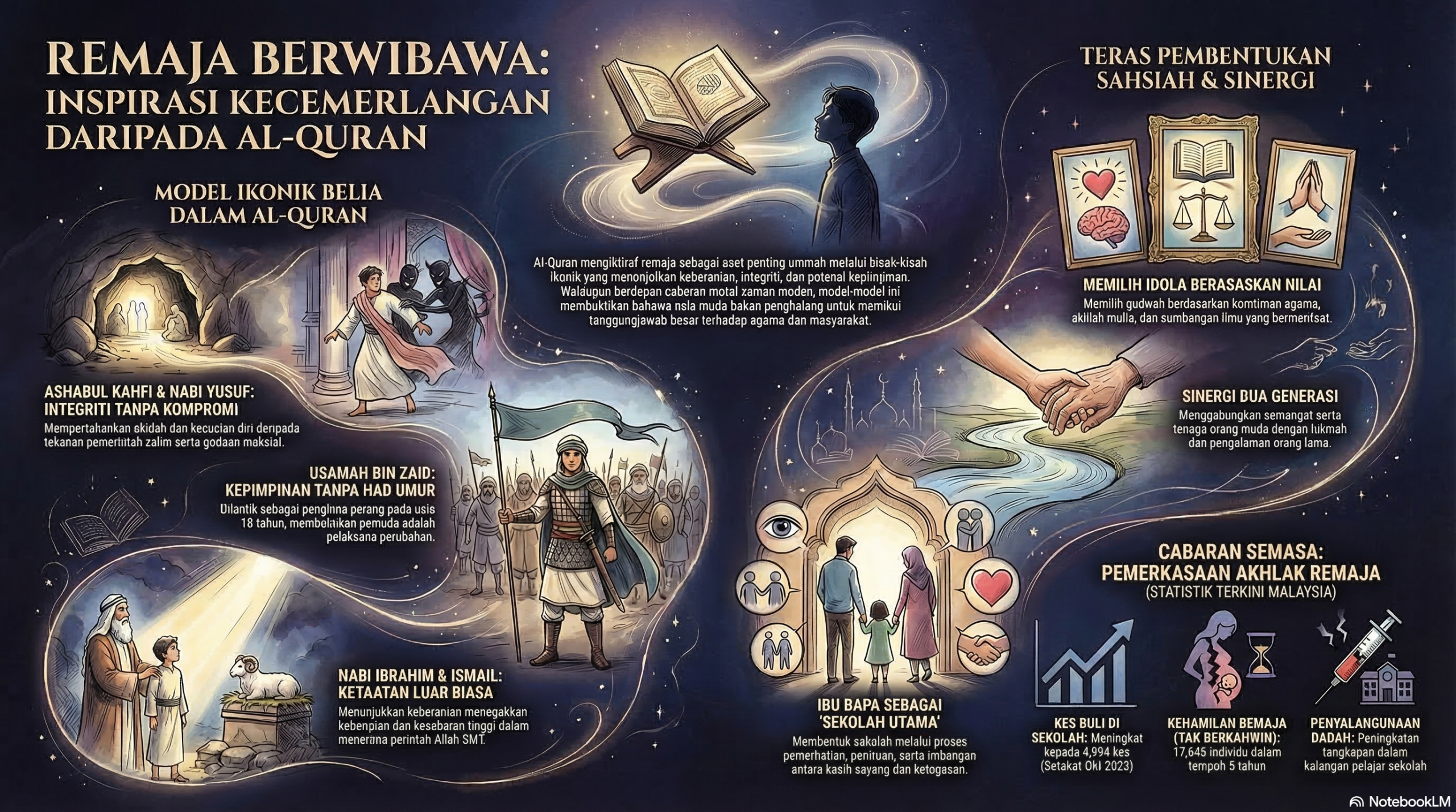 - Dalam menghadapi cabaran seperti tekanan akademik, media sosial, dan gangguan sosial, para belia perlu bersabar dan terus berusaha mengikut ajaran Islam.