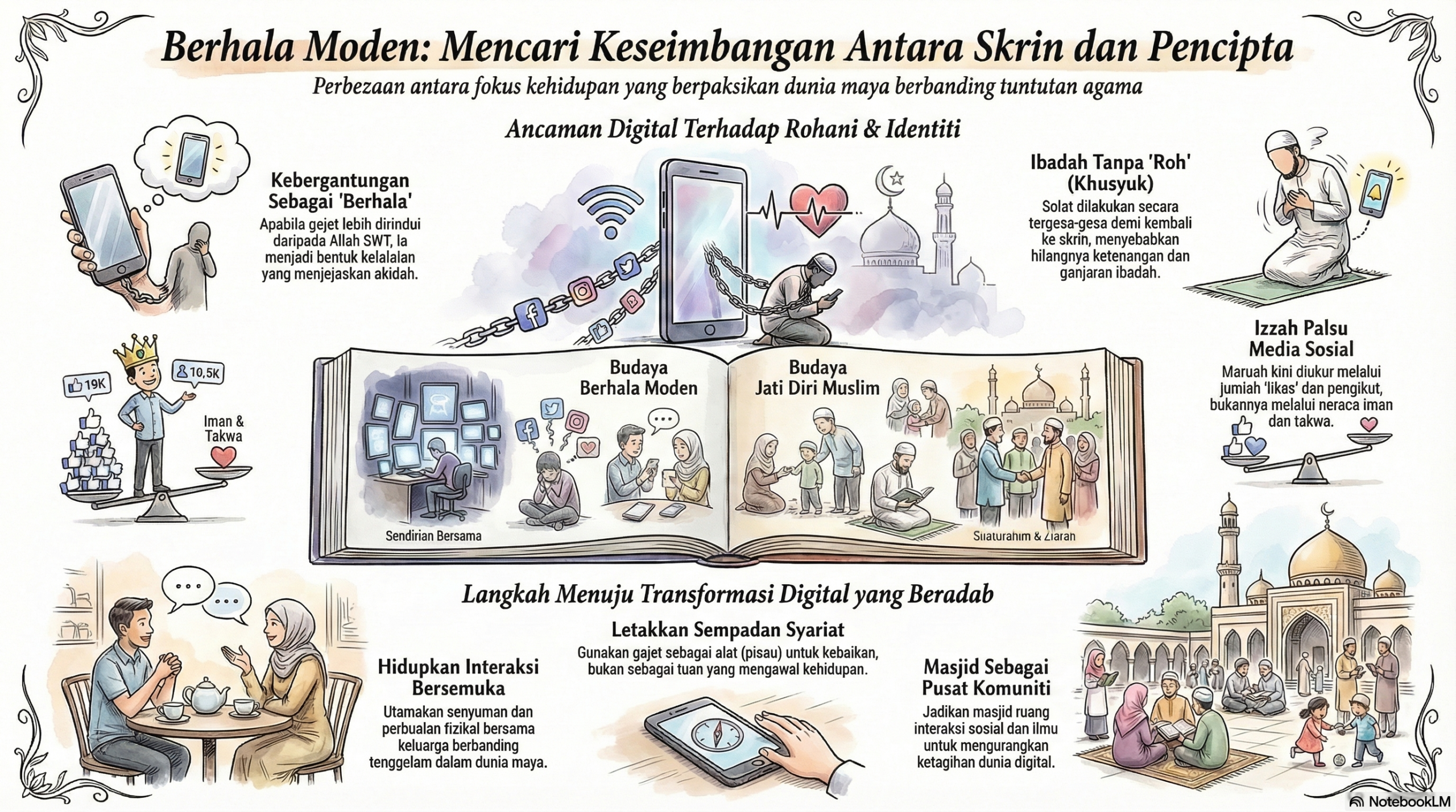 Jadikan gajet sebagai alat, bukan tuan. Letakkan sempadan agar ia tidak menjadi 'berhala' yang menjauhkan kita daripada Allah SWT.