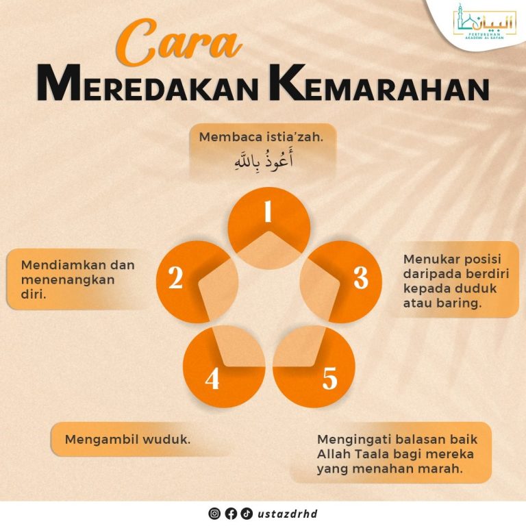 Di sini ustaz kongsikan beberapa cara yang boleh diamalkan untuk meredakan kemarahan. Antaranya ialah: