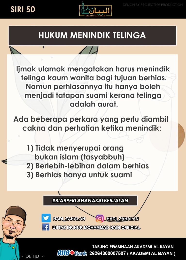 Mengenai perbuatan menindik telinga, ada beberapa perkara yang perlu diambil cakna dan perhatian.