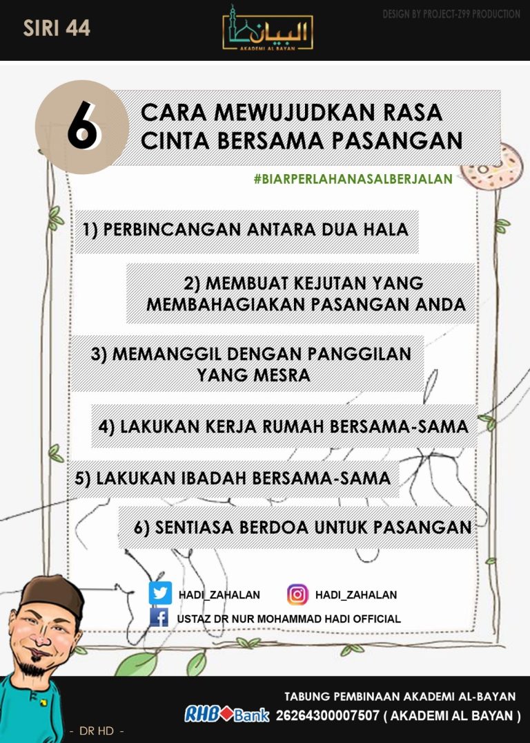 Oleh kerana itu, bolehlah ikuti langkah kebahagiaan bagi menyemarakkan lagi kasih sayang yang telah dibina: