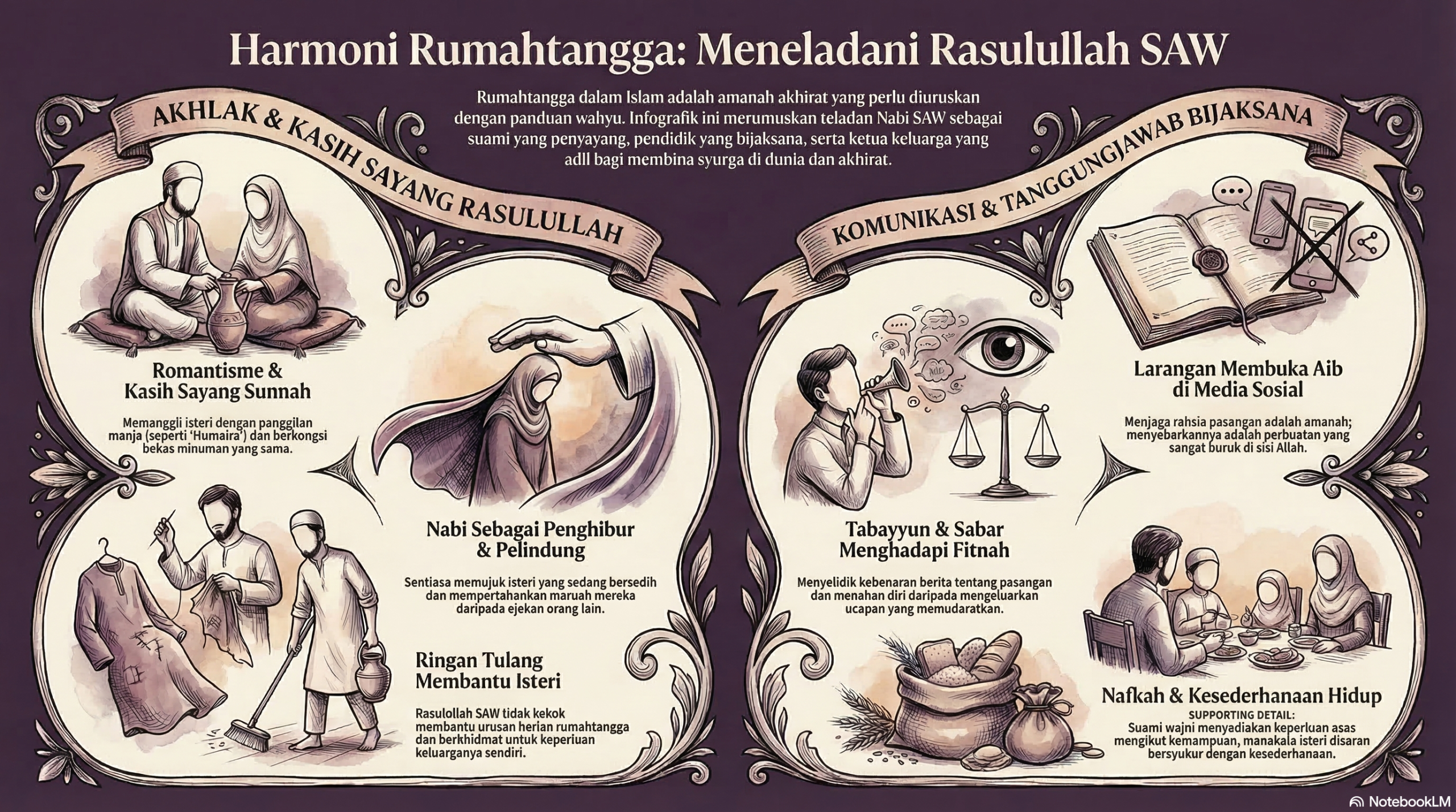 Rasulullah SAW adalah teladan terbaik dalam menjalani kehidupan rumahtangga yang sederhana, penuh kasih sayang, dan bertumpukan kepada keberkatan. Kesederhanaan hidup Baginda bukanlah disebabkan oleh kekurangan rezeki, tetapi sebagai pilihan untuk mendidik umatnya tentang zuhud dan mengutamakan akhirat.